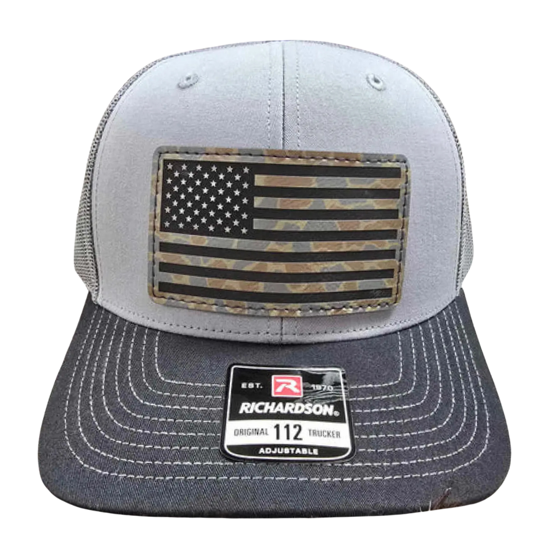 Rock your patriotic side with this trucker style hat that blends classic Americana with tactical style. The eye-catching pleather patch is stitched securely in place, so it'll stay put through all your adventures.
