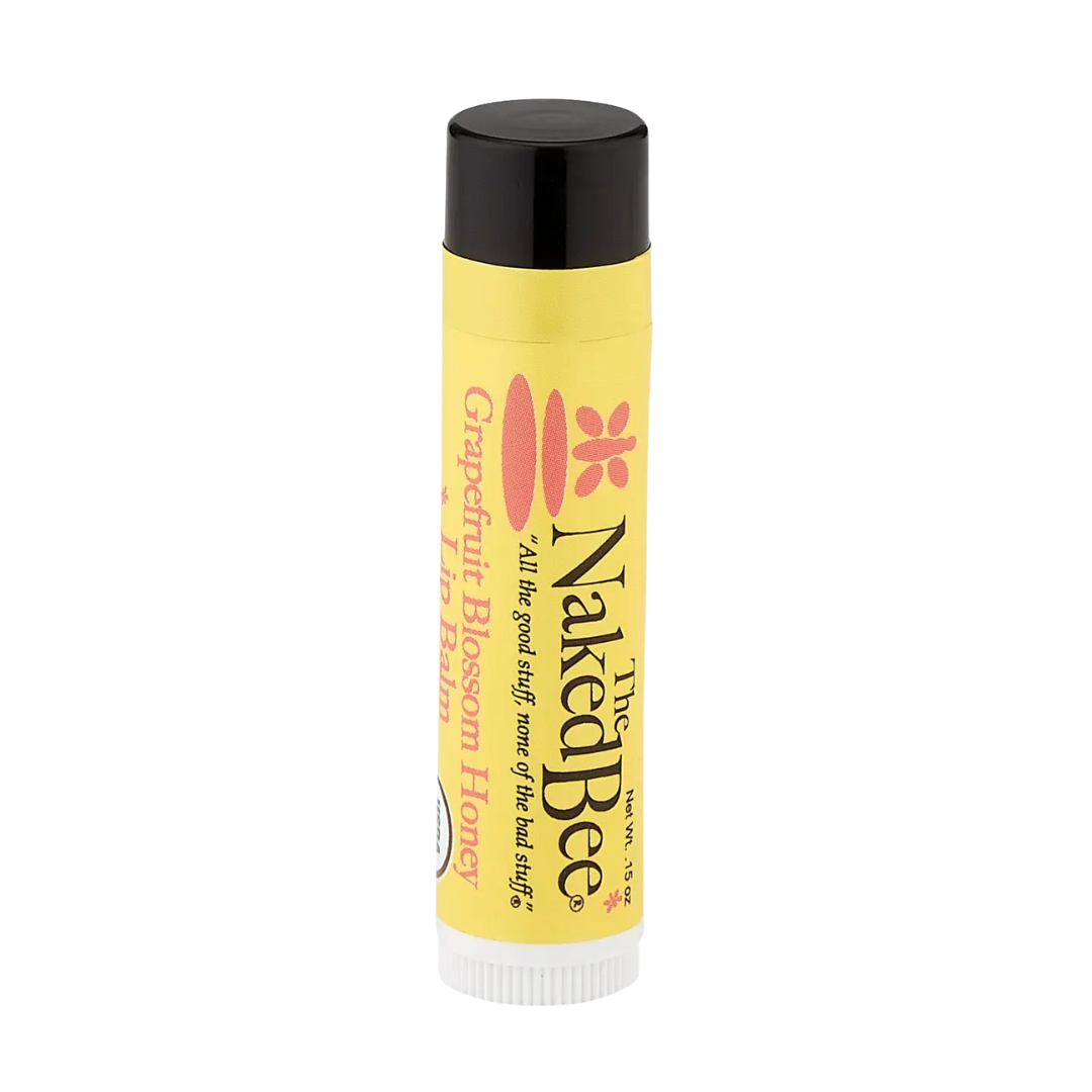 Light grapefruit flavoring. Made with organic olive oil and beeswax, soybean oil, and honey. Goes on soft and smooth, and protects lips from all kinds of weather. Made in Tennessee by The Naked Bee.
