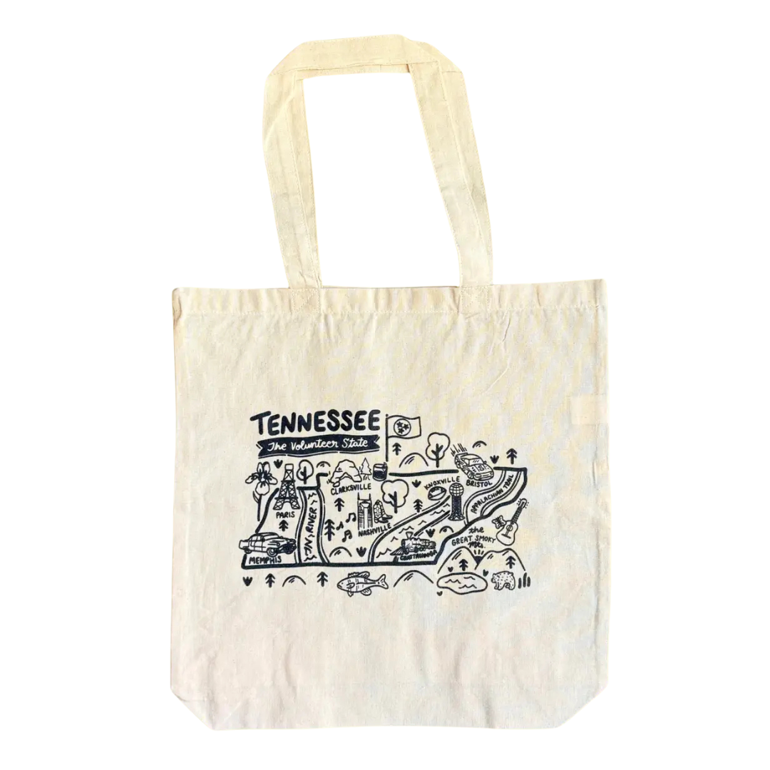 Design printed on 100% cotton tote bag. 15" x 16" x 4"